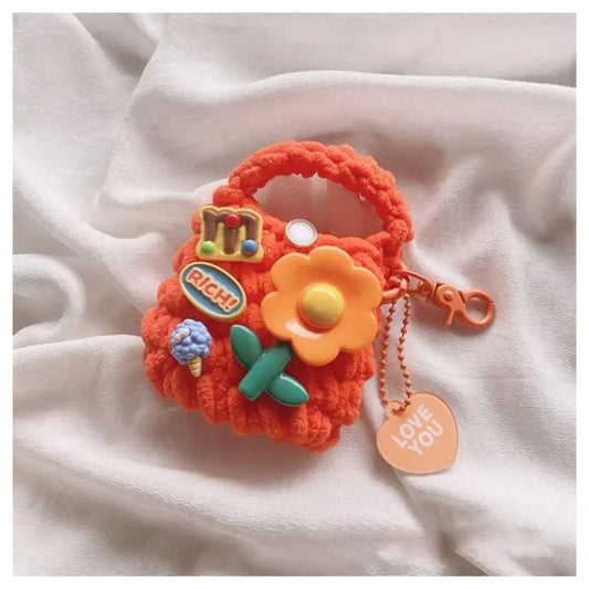Flower Crochet Keychain Creative Earphone Storage Bag Candy Color Pendant Earphone Case Bluetooth Headset Cover for Airpods 1/2
