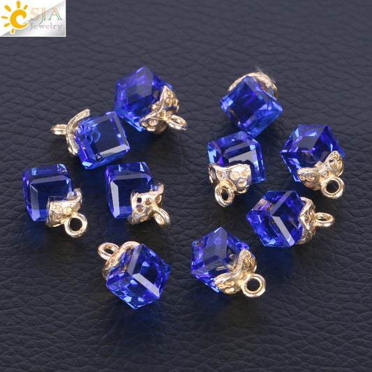 CSJA Cube Loose Crystal Beads for Needlework Jewelry Making Square Shape 2mm Hole Austrian Glass Beads Beadwork DIY 10pcs F367