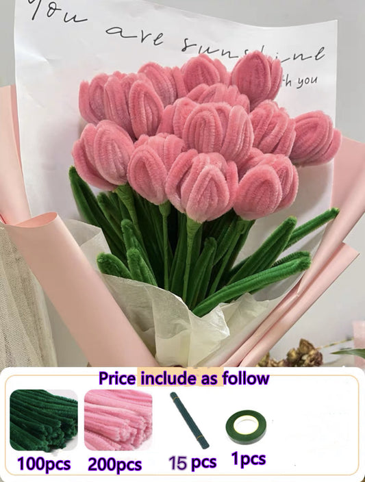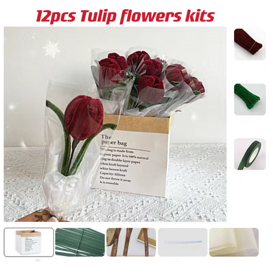 DIY Raw Material Tulip Flowers Kits Chenille Stems Pipe Cleaners Fuzzy Wire Whole Sets With Gift Bag Flowers Birthday Gift Home Craft Flowers Handcraft