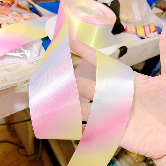 Handmade diy colorful satin ribbon with golden edge for ribbon flower handcraft birthday gift