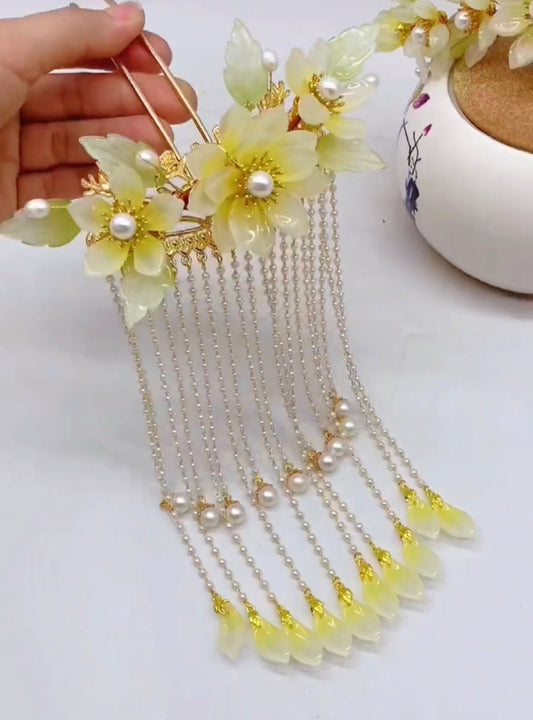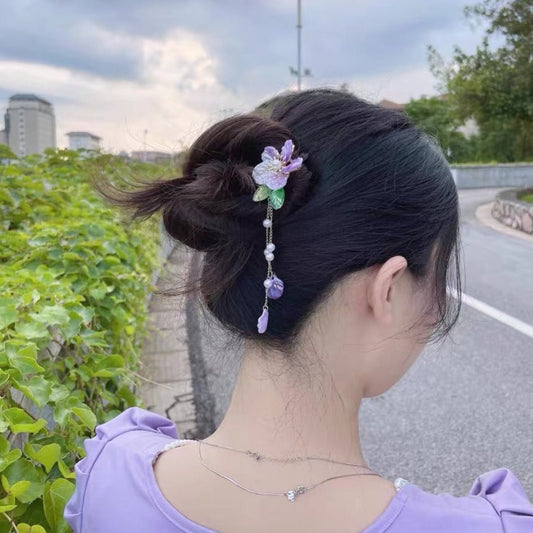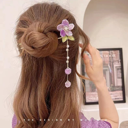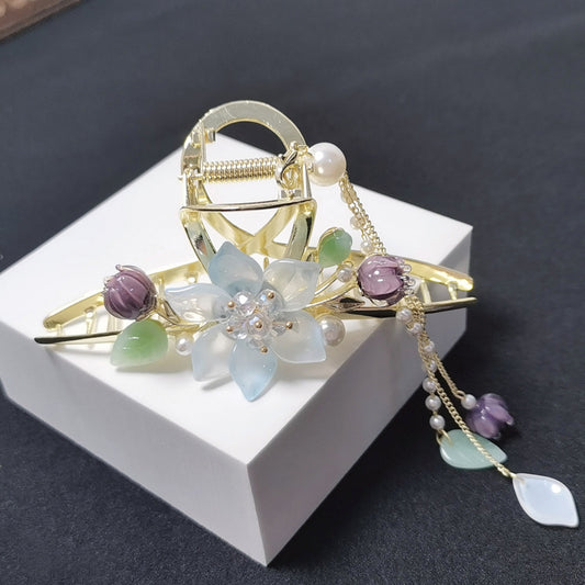 Handmade fancy hairpin with large tassel coloured glaze flower hairclip custom gift personalized accessories