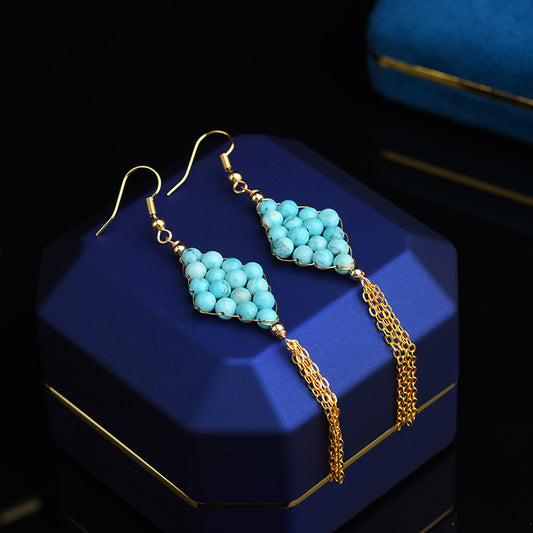 Handmade diy fashion jewelry beads fancy blue geometric earring sets custom birthday gift