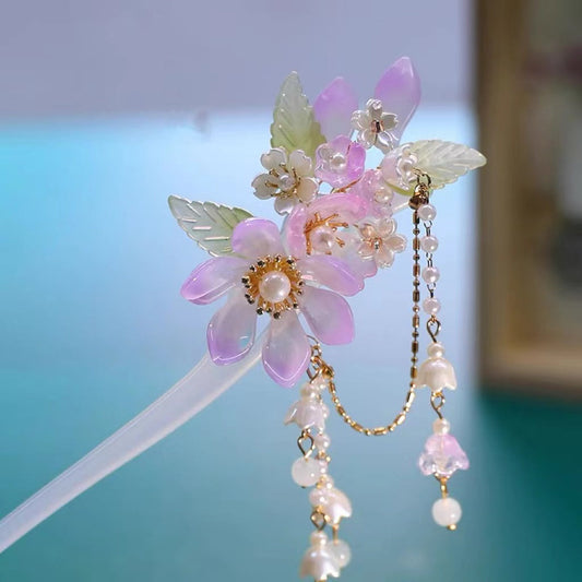 Handmade DIY hairpin with tassel coloured glaze flower hairclip custom gift personalized accessories