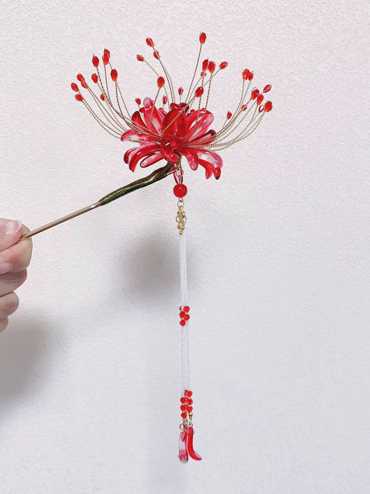 Hanmdade spider lily flower hairpin Chinese Hanfu style for girls personalized birthday gift