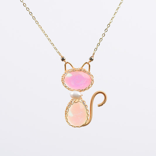Handmade diy fashion moonstone crystal necklace cute butterfly whale cat animal custom birthday gift