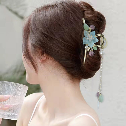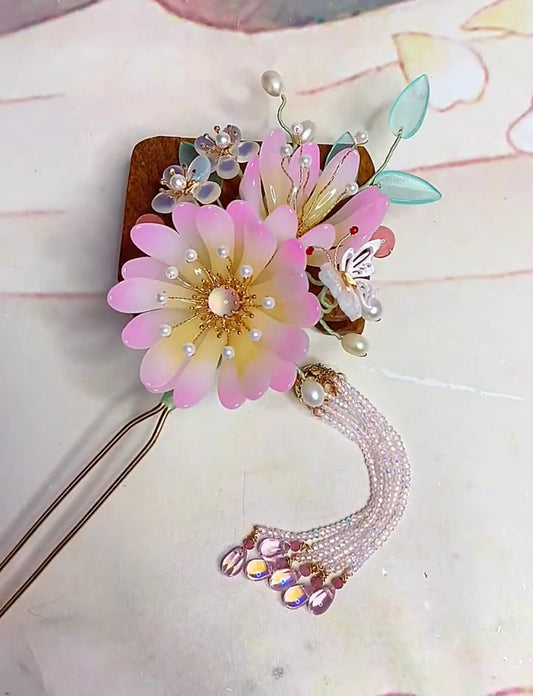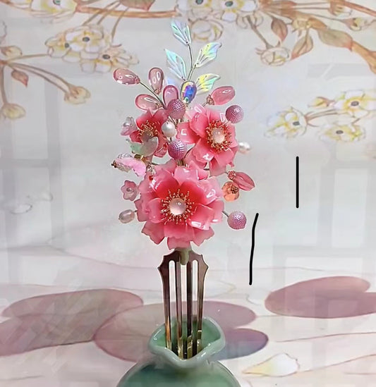 Handmade DIY coloured glaze flower forked hairpin hairclip custom gift personalized accessories