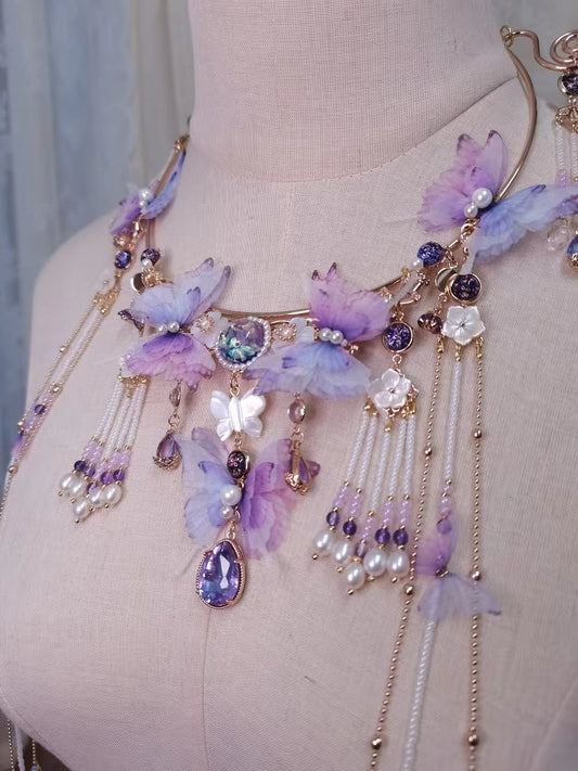 Handmade fancy butterfly necklace purple color diamend custom gift personalized accessories