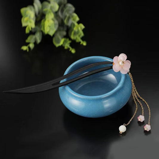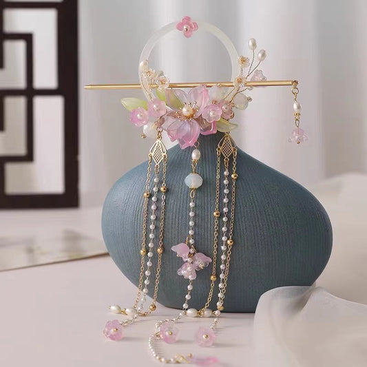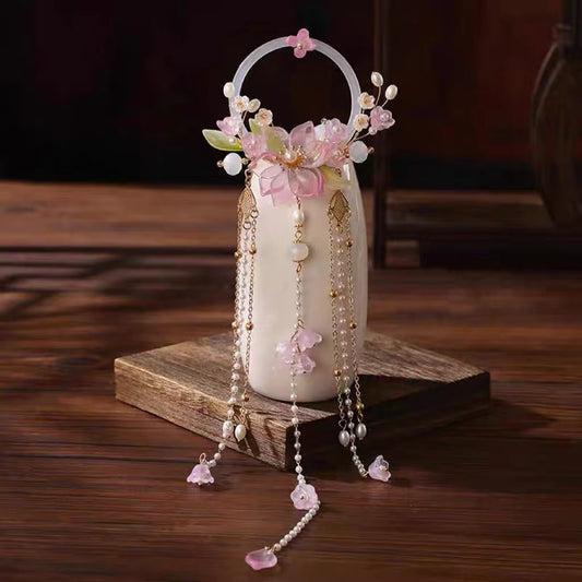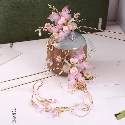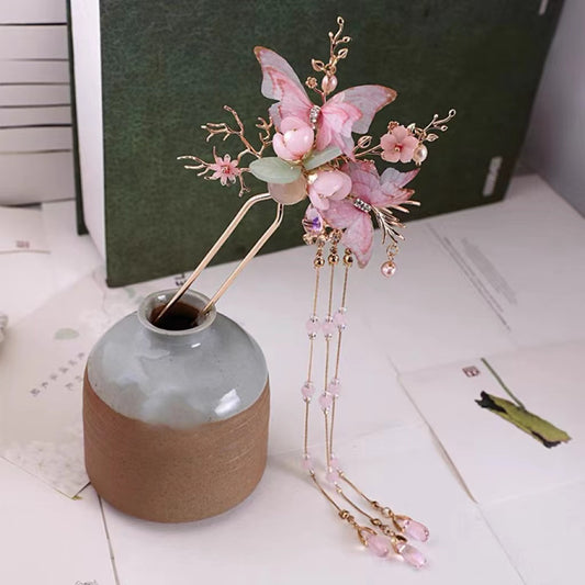 Handmade pink butterfly hairpin with tassel coloured glaze flower hairclip custom gift personalized accessories
