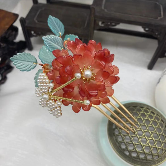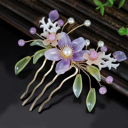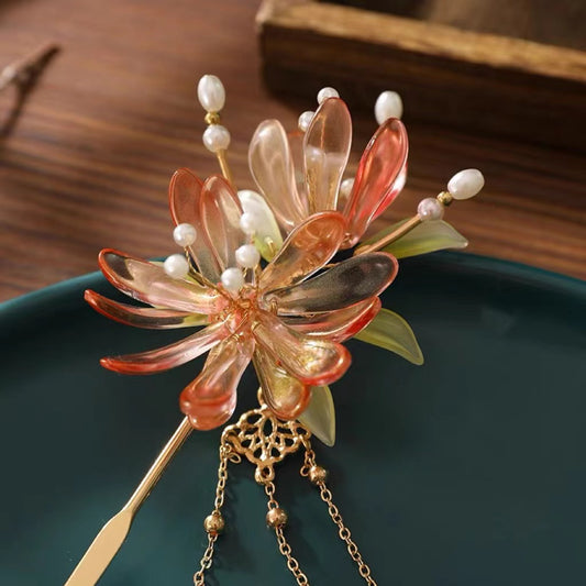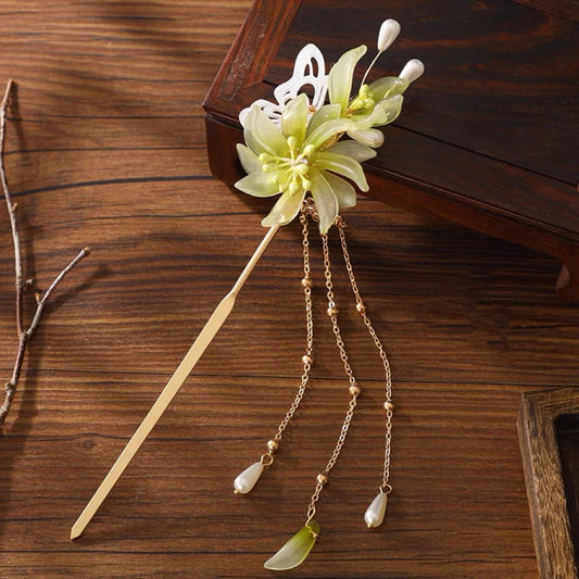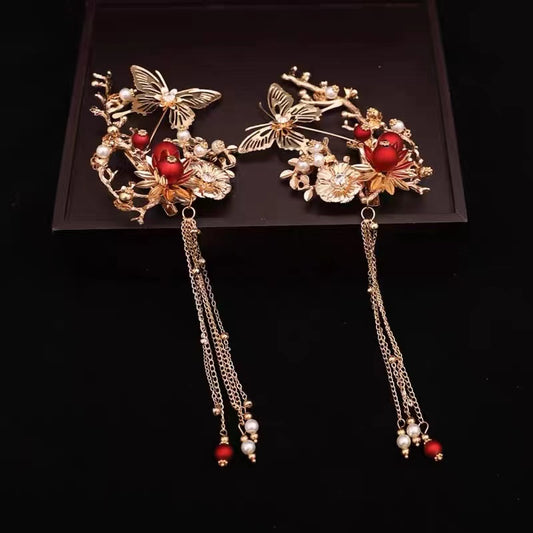 Handmade butterfly hairpin with tassel coloured glaze flower hairclip custom gift personalized accessories