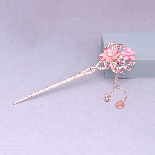 Women Hair Cat Eye Stone Women's Hair Pin Double Flower Rhinestone Hair Stick Hair Clip Accessories Classical Hairpin
