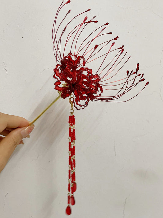 Handmade red spider lily equinox higanbana flower hair products custom gift personalized accessories