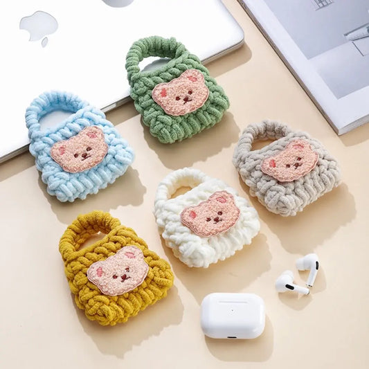 Plush Knitting Bear Bag Shell For Airports 1 2 Pro/Airpods 3 Pro 2 Headset Case Fluffy Bluetooth Earphone Charging Box Cover