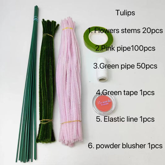 DIY Raw Material Tulip Flowers Kits Chenille Stems Pipe Cleaners Fuzzy Wire Whole Sets With Gift Bag Flowers Birthday Gift Home Craft Flowers Handcraft