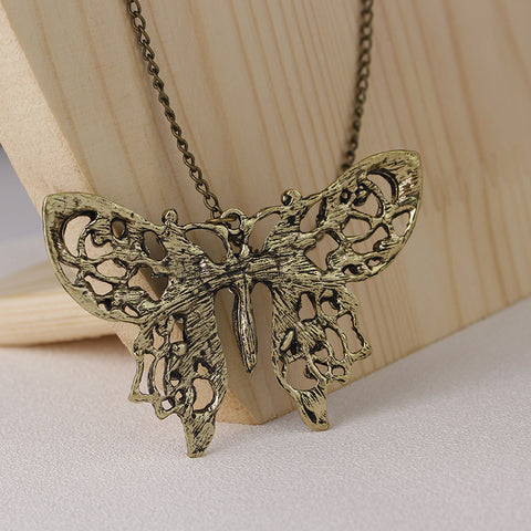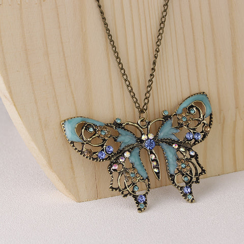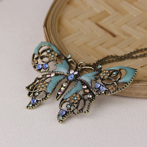 Handmade Retro Vintage Berongga Tetesan Minyak Kupu-kupu Sweter Rantai Kalung
