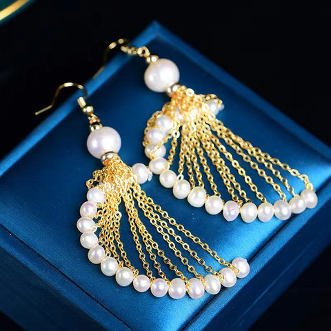 Womens Earrings Handmade Perhiasan Ringan dengan Rumbai Mutiara Putih